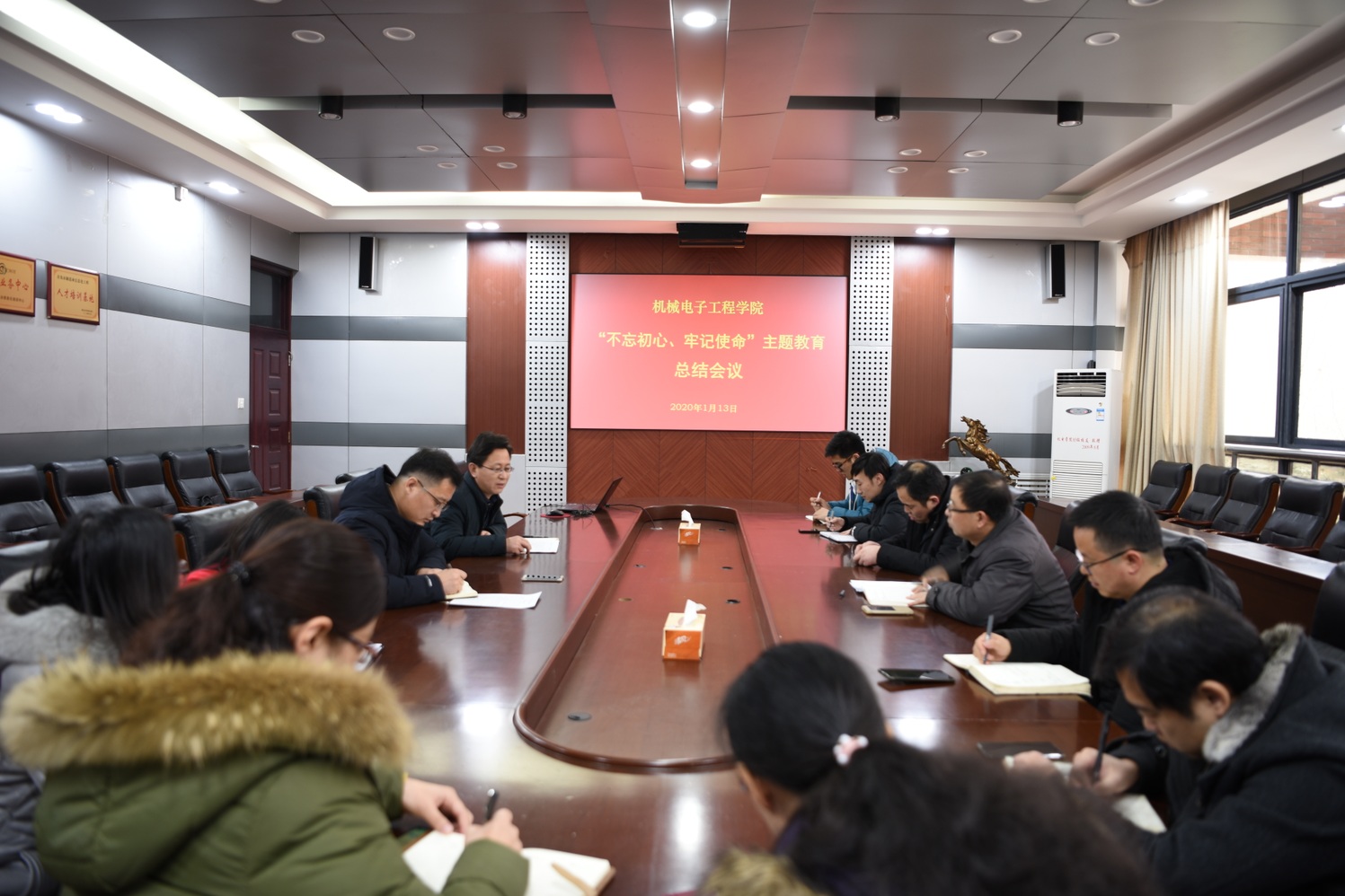 点击:1月13日,机电学院党委召开“不忘初心、牢记使命”主题教育总结会议,学院党委理论学习中心组成员,各党支部书记参加会议。会议由学院党委书记韩宝坤主持。