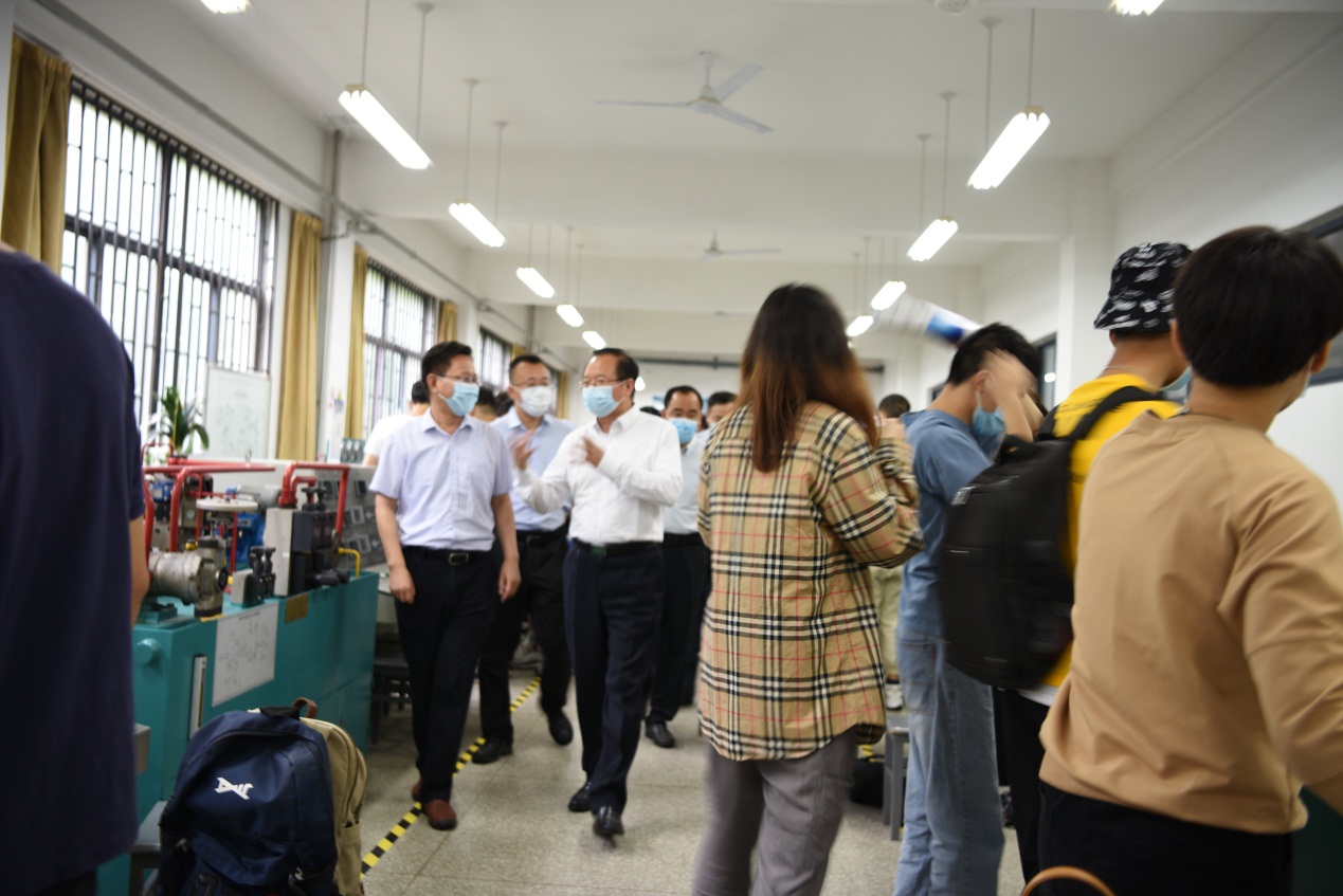 点击:6月10日,学校党委书记罗公利、副校长曾庆田到机电学院调研考察学生复学复课情况。学校党委办公室主任徐方全、教务处处长乔卫国、实验室与设备管理处处长李春晖等一同调研考察。