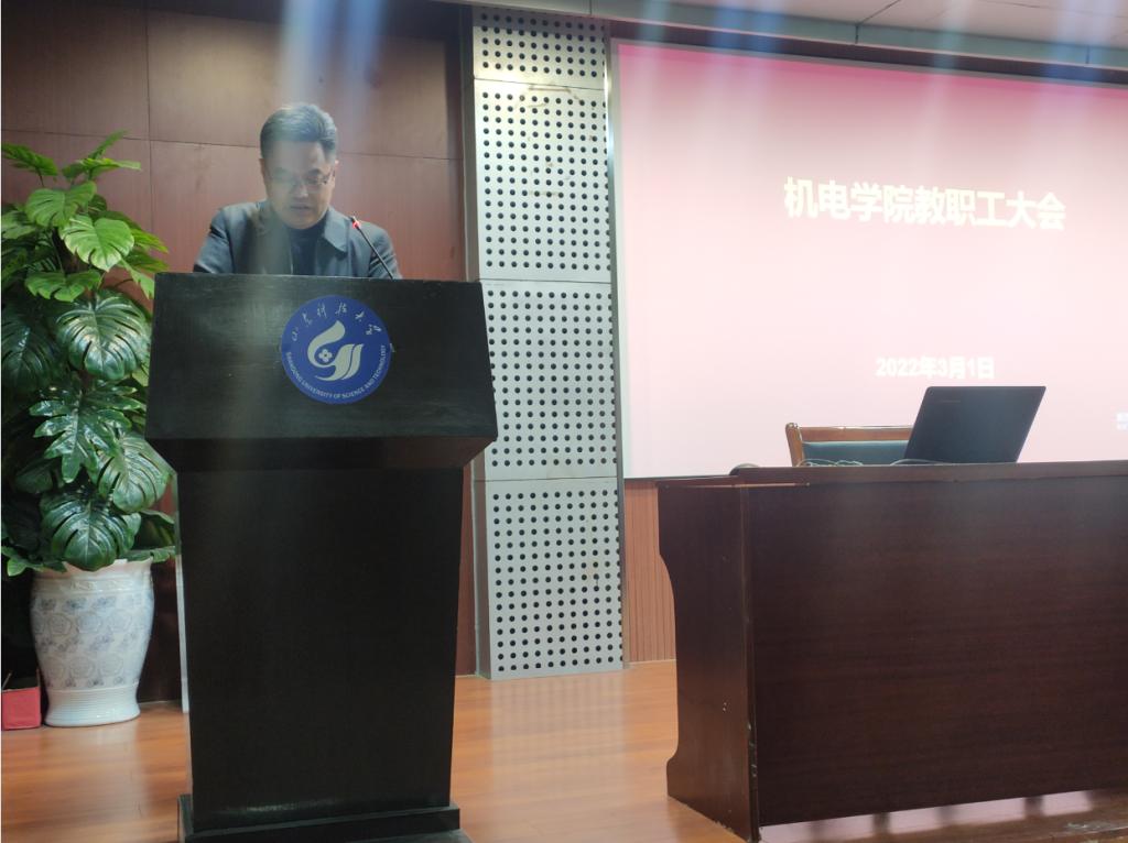 院长张强总结了学院2021年的主要工作,传达了学校2022年工作会议精神,指出了学院发展面临的困难,结合学校2022年工作要点,提出了2022年学院工作的任务和目标,对学科发展、研究方向、筹备产业学院、专业建设、科技奖突破、科研项目与经费、人才引进与培养、加强研究生培养、开放办学等工作进行了具体部署。