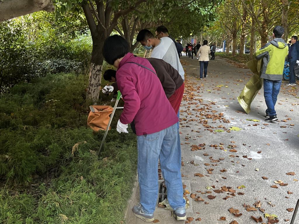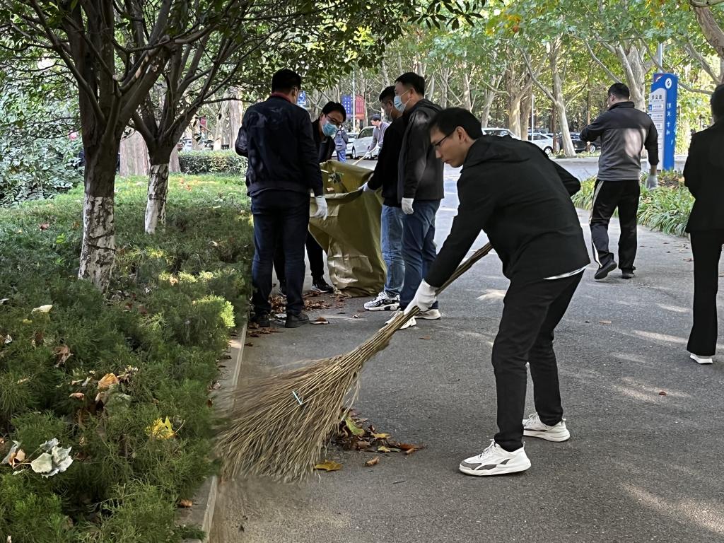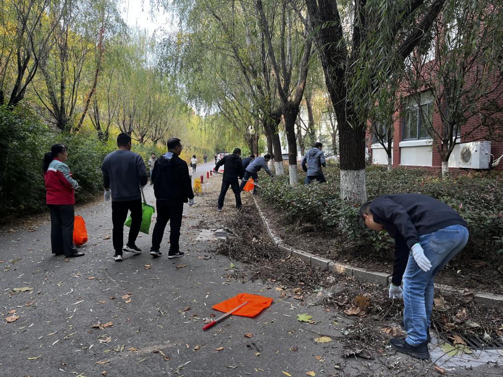 大家拿好清扫工具后,便前往各自负责的区域进行打扫,捡拾校园花圃、树丛等处的“隐匿”垃圾和路面上散落的枯枝落叶、纸屑、饮料瓶等垃圾,营造更好的校园环境。在打扫过程中,师生热情高涨,干劲十足。活动现场井然有序,轻松活跃,在劳动中大家愉快地交谈着,欢声笑语伴随其中,呈现出一片祥和的景象。经过两个多小时的奋战,路面和花坛中的枯枝落叶和白色垃圾被清扫完毕,学院楼周围环境焕然一新。