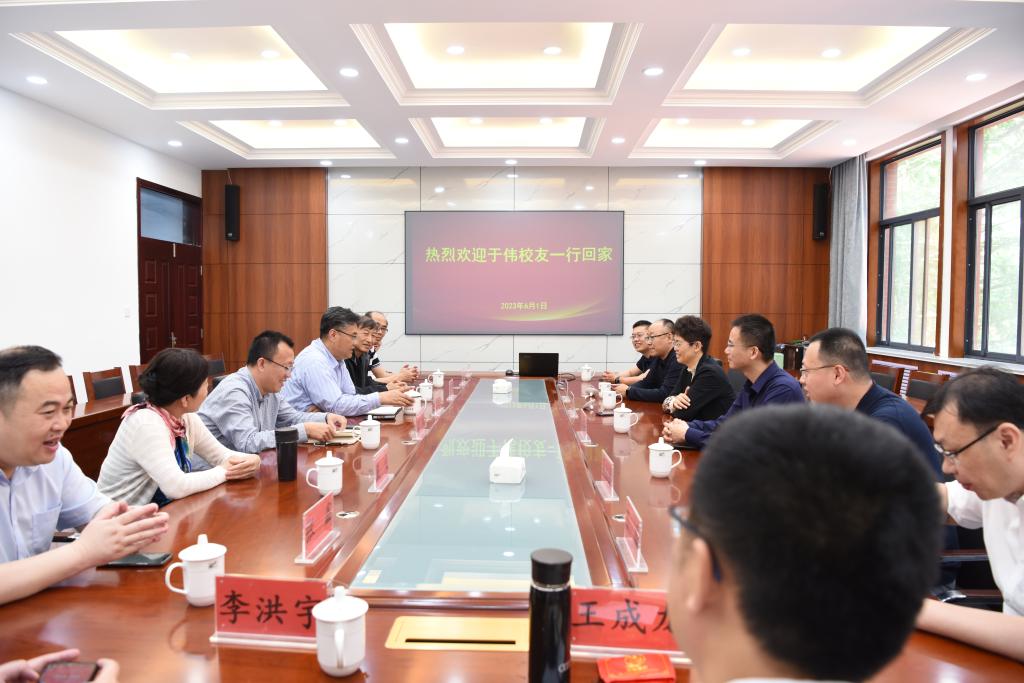 座谈会后,校友们还参观了学院教学、实验室和小平科技创新团队荣誉室,并合影留念。此前,校长曾庆田接见了于伟、曾庆元一行。