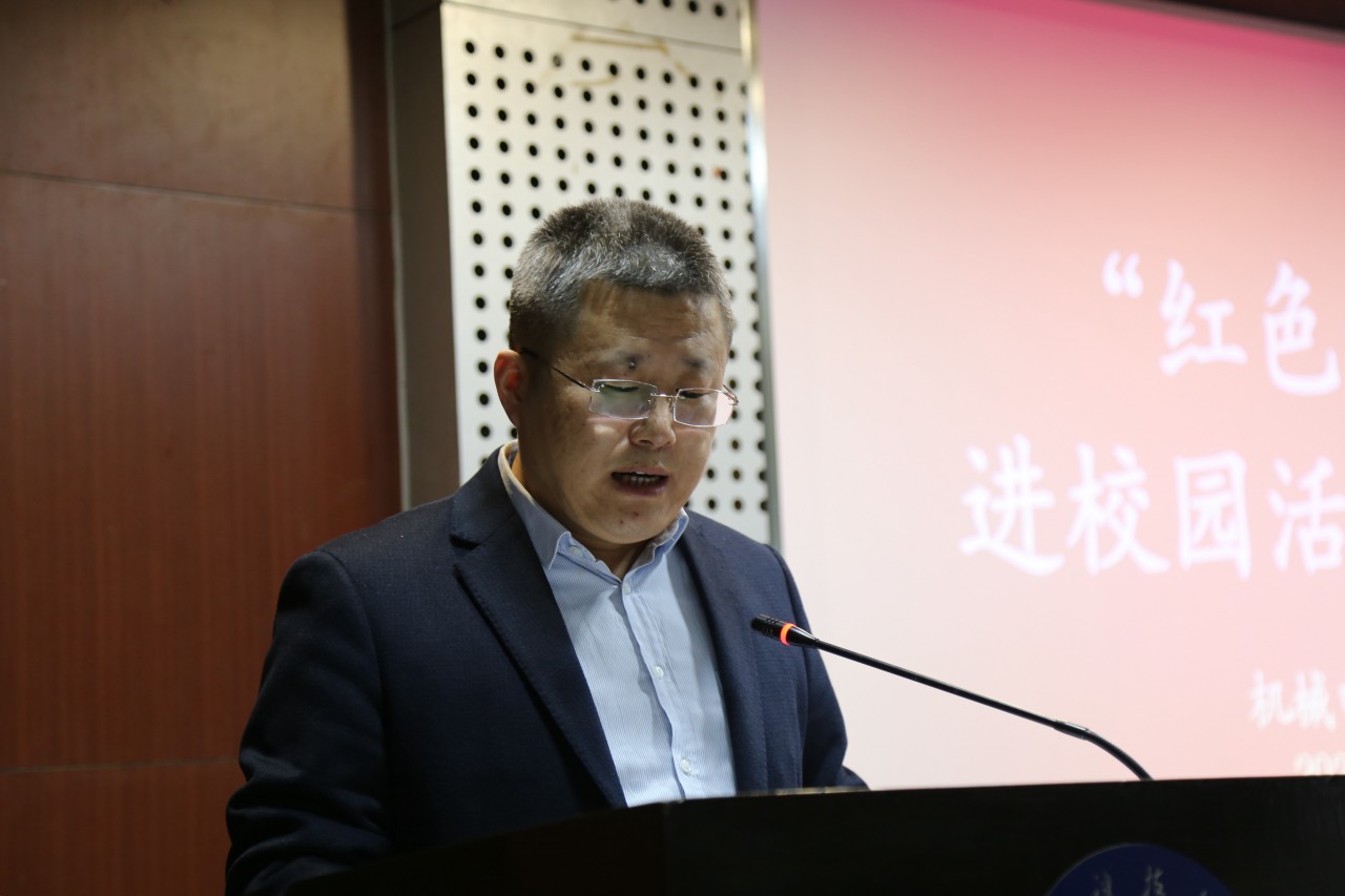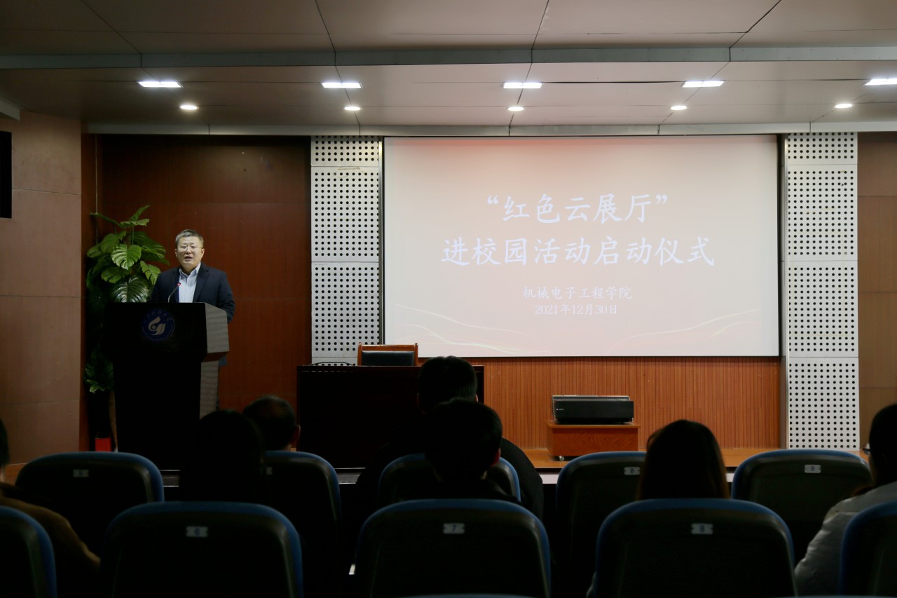启动仪式上,陈猛宣读《中共beat365英国官方网站beat365英国官方网站委员会“红色云展厅”进校园活动实施方案》,明确各阶段的活动任务要求,宣布机电学院“红色云展厅”进校园活动正式启动。