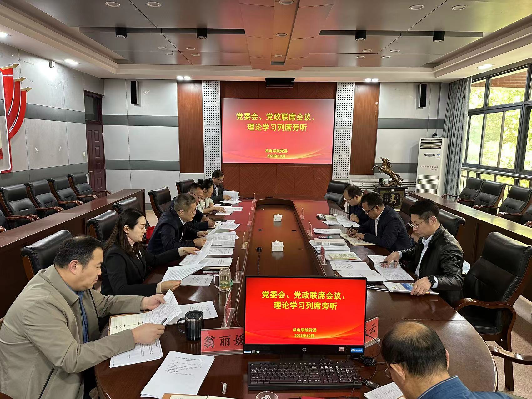 点击:10月23日下午,机电学院在204会议室召开党委会、党政联席会和理论学习中心组集中学习会议,会议由学院党委书记陈猛主持,学院全体领导班子成员参加。校统战部常务副部长王永君、党委办公室(学校办公室)副主任杜军、党委办公室(学校办公室)督查室主任李恒忠列席旁听会议。