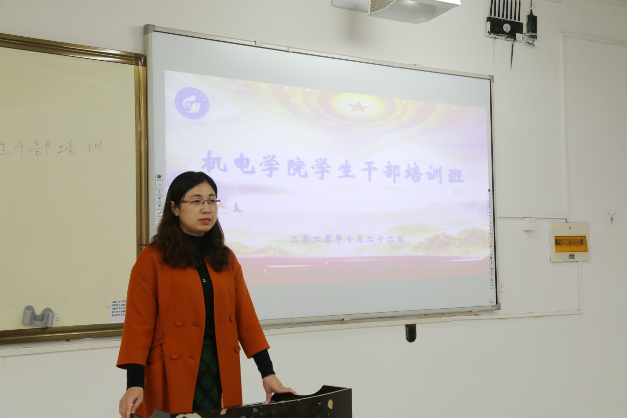点击:为进一步加强学生干部队伍建设,提高学生干部素质和工作能力,10月22日下午,机电学院在J14-205教室举办2020年学生干部培训班开班仪式暨第一期培训讲座。科大报副主编、编辑部主任信永华老师应邀担任主讲。机电学院学工办主任(团委书记)樊玉华、辅导员祝月盈老师出席培训班,各年级团支书、宣传委员及院新闻媒体中心全体成员参加了此次培训。