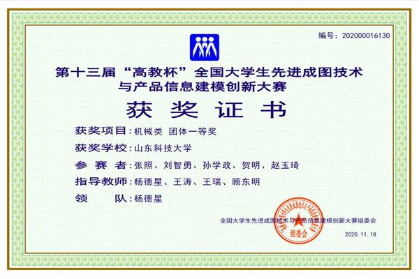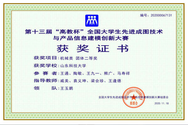 点击:近日,由全国大学生先进成图技术与产品信息建模创新大赛组委会、中国图学学会制图技术专业委员会和中国图学学会产品信息建模专业委员会主办,南昌航空大学承办的第十三届全国大学生先进成图技术与产品信息建模创新大赛顺利落下帷幕。由孙学政、张照、刘智勇、赵玉琦、贺明、张广宇、郑元坤、隗明鑫、孔维志组成的机械类代表队(指导老师:杨德星、王涛、王瑞、顾东明)获得机械类团体一等奖,这是beat365官网连续六年获得机械类团体一等奖。同时由陶敏、马寿祥、王九一、熊广、王通、曲翔麟、柴泽华、王子恒、王震组成的机械类代表队(指导老师:戚美、王逢德、梁会珍、袁义坤)获得机械类团体二等奖。机械类代表队和由土建学院孔英豪、孙培竣、王江浩、肖盛鹏、张忠瑞组成的建筑类代表队还获得了3D打印二等奖1项、个人一等奖15项、二等奖19项、三等奖6项。