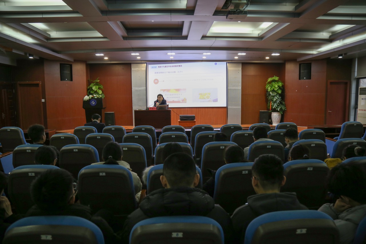 点击:为深入学习贯彻党的十九届五中全会精神,12月11日下午,教务处副处长樊建聪在学院报告厅为beat365官网2019级联系班级学生宣讲党的十九届五中全会精神,辅导员宋阔出席本次会议。