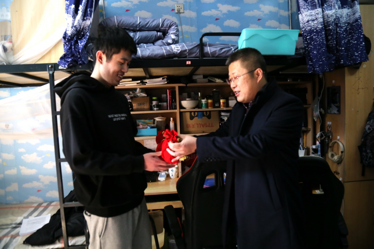 点击:距离2021考研还有三天的时间,12月23日,机电学院党委副书记、副院长陈猛,团委书记樊玉华,2017级辅导员林美玫、曲岩,走进考研同学的宿舍,为正在努力备考冲刺的考研学子送去温暖与祝福。
