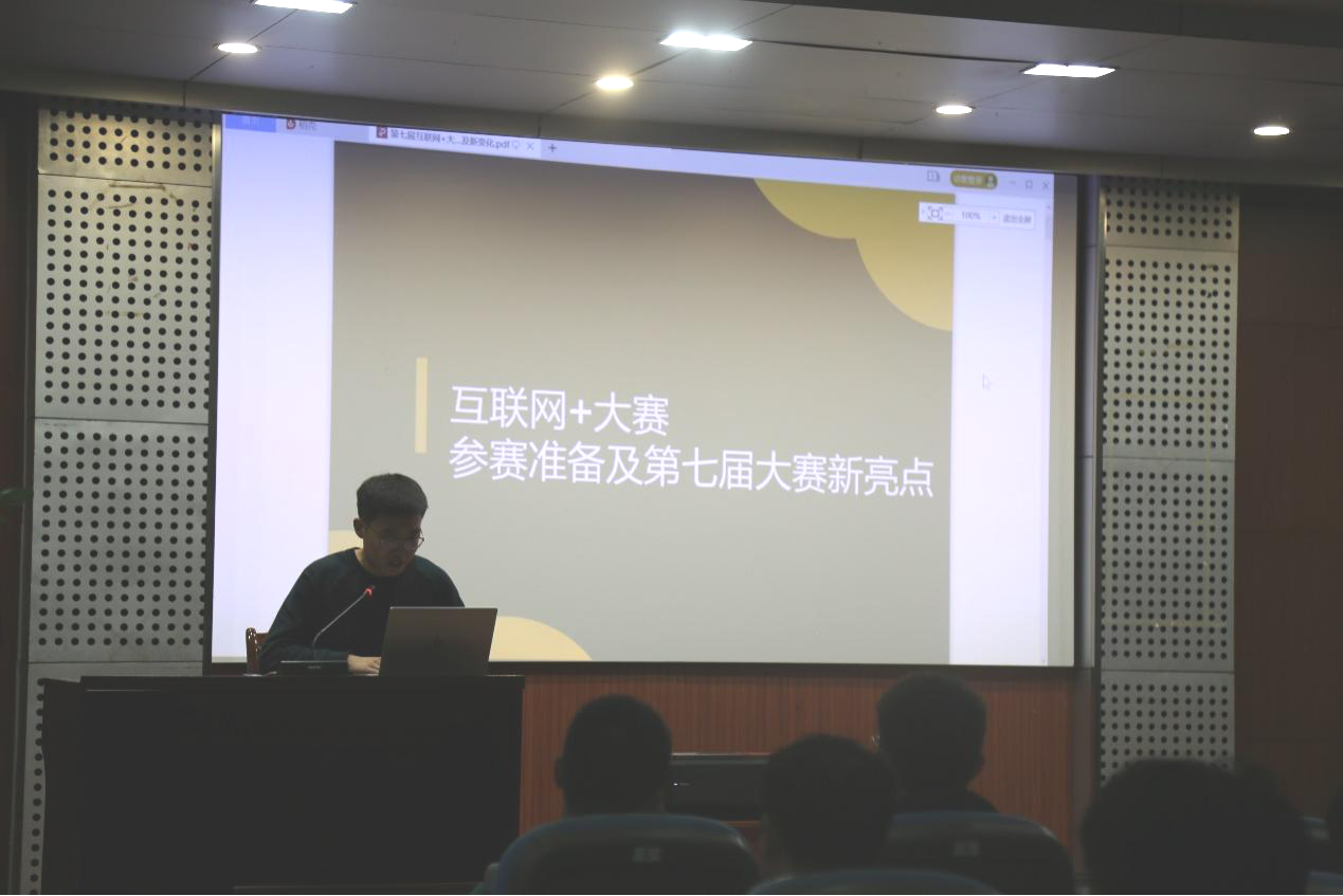 随后,唐延祥同学对参赛技巧进行了详细的讲解。首先,在撰写商业计划书时要注意真实性和有效性,不能存在团队虚构、偷换概念等基础性问题,在产品创新和内容展示方面做到别具一格、引人注目。其次,在答辩过程中要把握时间问题,逻辑清晰、语言流畅,本着实事求的原则与认真负责的态度,坦然镇定地回答评委老师提出的问题,虚心接受所给出的建议。最后,通过对历年优秀作品的介绍,提醒同学PPT的制作要做到简洁凝练、图文并茂。