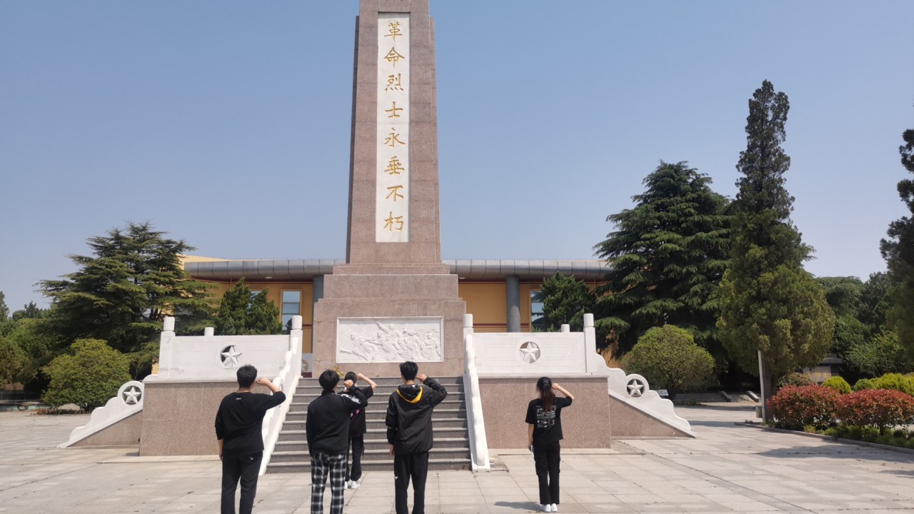 在革命先烈纪念碑前,全体同学默哀致敬并对纪念碑行鞠躬礼,表达对先烈的敬仰和缅怀之情。青山肃穆,松涛呜咽。面对革命先烈纪念碑,团队成员庄严宣誓:继承先烈遗志、铭记光辉历史,传承先烈精神、共建祖国未来。