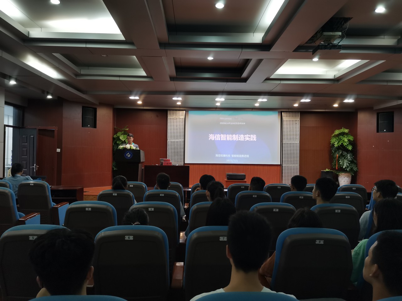 点击:7月1日晚,“嵙大·海信班”企业班主任丁觅坤在机电学院报告厅为班级学员作“海信智能制造实践”主题讲座。来自机电、电信等5个学院的20余位同学参加讲座,“嵙大·海信班”企业班老师贾玉玉主持。