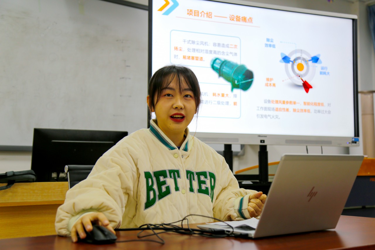 常心如向同学们详细介绍了科技比赛的项目类别、参赛项目的要求和赛程安排,并结合自身经历分享了比赛过程中容易出现的各种情况,她以“三维多向旋流风幕智能控尘装置”项目为例,阐述了整个项目从无到有的过程。接着,刘晨辉针对比赛的奖励机制、比赛过程中需要注意的细节进行介绍,并向参赛队伍提出了专业性建议。最后,常心如和刘晨辉结合专业特点和自身参赛经验回答了同学们关于学术创新方面的问题。