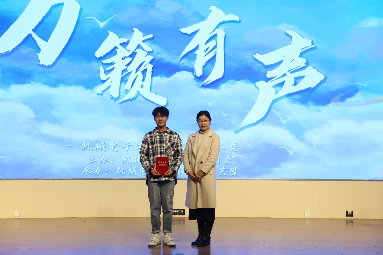 点击:为庆祝beat365英国官方网站70周年华诞,促进机电学院文体事业发展,提高机电学子文艺水平,丰富同学们的课余文化生活,11月23日晚上,机电学院在大学生活动中心隆重举办“万籁有声”歌手大赛决赛。机电学院团委书记樊玉华,团委老师王玉鹏、宋阔、杨治宽、曲岩、孟凡宝、罗雨婷、苗成旭,学生代表周子航、张谕禄、朱浩强、焦政翔出席本次活动。