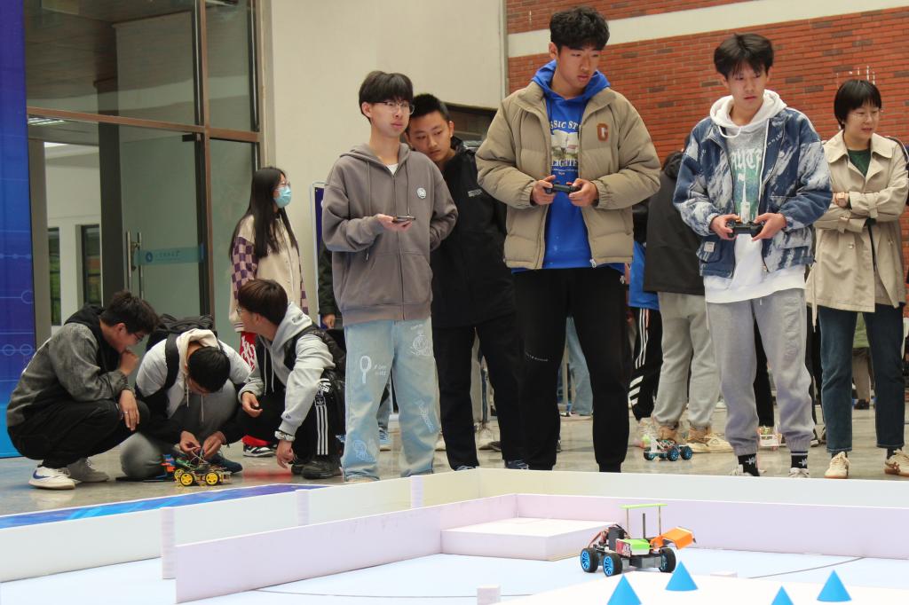 一个个冷冰僵硬的机器人,经过队员们的精巧设计,变成了一个个充满智慧的机器精灵。“力大无穷”物料搬运车、“稳如泰山”基地防守车、“奔逸绝尘”越障风机车…来自机电学院等9个学院的255名学生组成的95支代表队在决赛现场花式“炫技”,引发现场观众阵阵掌声。