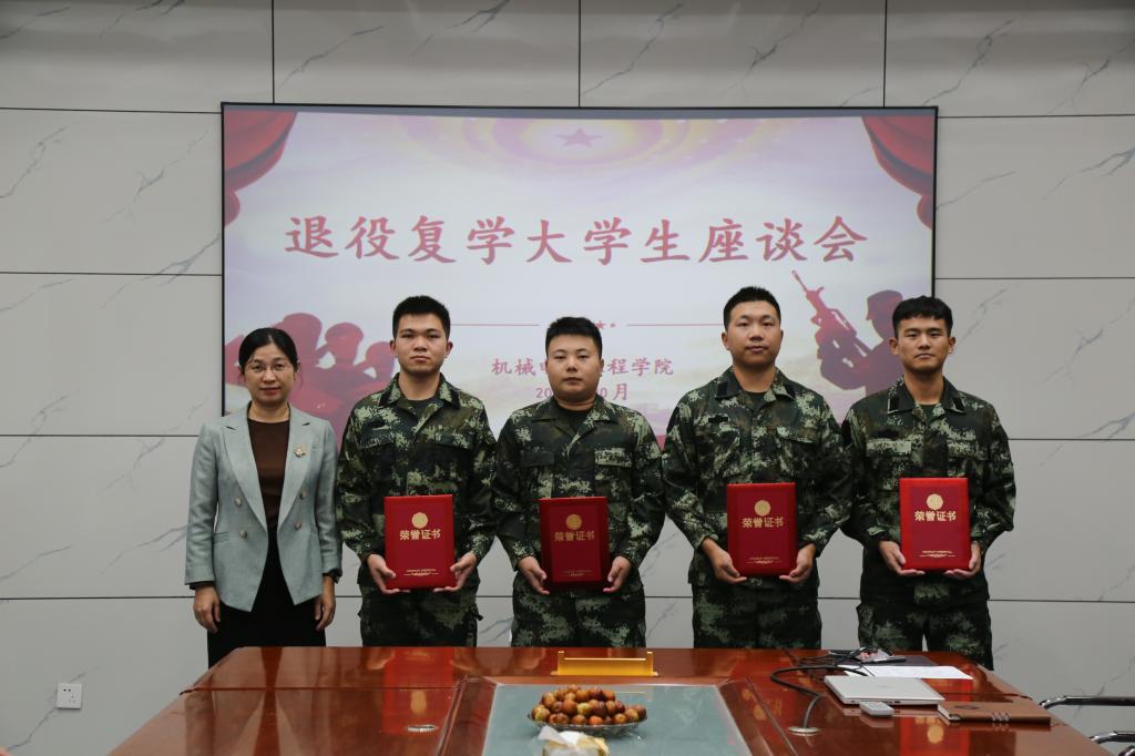 点击:为深入了解退役复学大学生返校后的学习、思想以及生活等方面的情况,扎实做好退役复学学生各项工作,10月18日,机电学院于J8-209会议室举办退役复学大学生座谈会,机电学院党委副书记兼副院长刘梅月、机电学院学工办主任樊玉华以及机电学院辅导员老师出席座谈会,活动由机电学院辅导员宋阔主持。