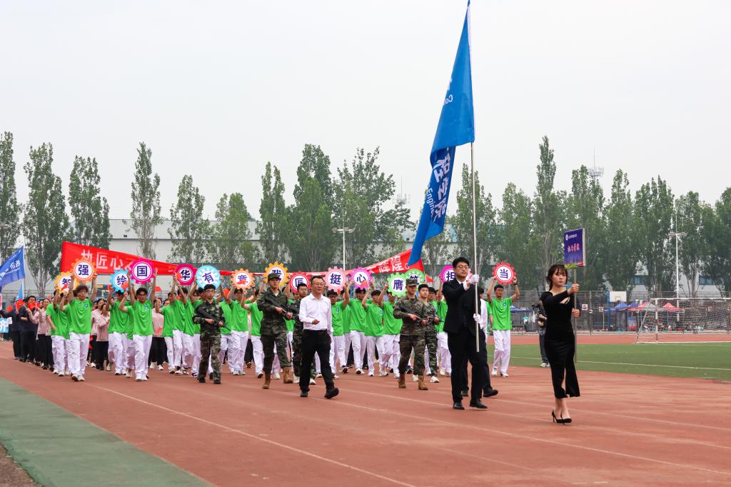 在5月14日的开幕式盛典中,机电学院方队以昂扬姿态惊艳亮相。200余名师生身着统一服装,踏着《运动员进行曲》的铿锵节拍,以整齐划一的步伐通过主席台。方阵成员高举齿轮状手持板,随音乐节奏变换出“匠心筑梦,智绘华章; 强国有我,挺膺担当”字样,自信的笑容与矫健的身姿彰显出学院锐意进取的精神风貌。