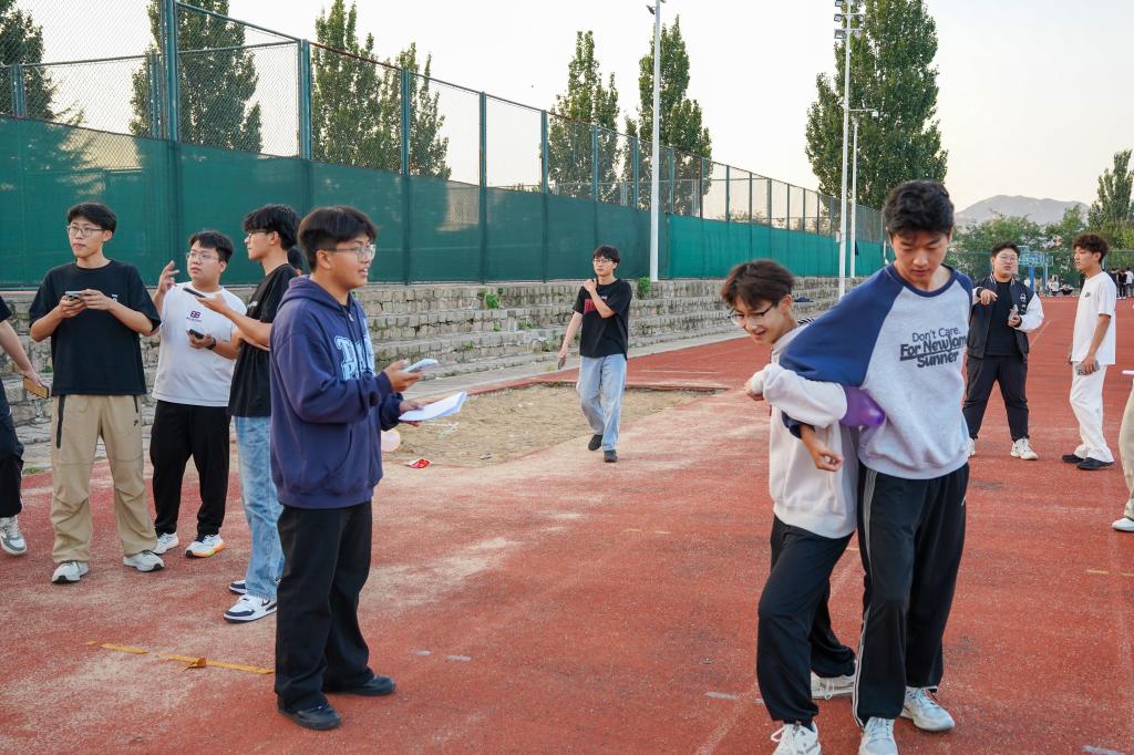 10月11日晚,系列活动在“光影忆峥嵘・观影《八佰》”中拉开序幕,师生共同观影,回顾英雄岁月,厚植爱国情怀。10月14日下午,“国庆薪火跑”“同心贺国运”“聚力颂祖国”三大体育项目在高地操场接连展开,同学们在接力答题、协作运球、团队传递中全力投入。默契的配合、精准的传递,以及此起彼伏的加油呐喊声,构成了操场上一道活力的风景。