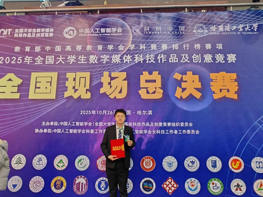 点击:近日,第十三届全国大学生数字媒体科技作品及创意竞赛在哈尔滨工业大学圆满落幕,经过激烈角逐,机电学院参赛团队斩获国赛一等奖1项、国赛二等奖2项、国赛三等奖22项,其中,由2024级研究生李江龙等人完成的项目《“擎云智行”——面向智能电动叉车的集群云控调度系统》(指导教师:杨扬)斩获国赛一等奖。