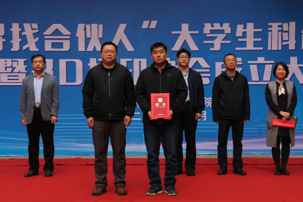 点击:为展示机电学院取得的创新创业成果,给具有优秀创新项目的教师和渴望参赛的同学搭建桥梁,提高3D打印技术的普及程度,10月26日下午,机电学院隆重举办第三届“寻找合伙人”大学生科创项目双选会暨3D打印协会成立大会启动仪式,校团委书记尹立明、机电学院院长张强、研究生院副院长刘松、学生工作处副处长靳凯、创新创业学院副院长杨彬、机电学院副书记陈猛、副院长张鑫以及学院全体辅导员应邀出席仪式,学院科创发展部全体成员、各年级科技委员与科技创新爱好者参加。机电学院团委书记樊玉华主持会议。
