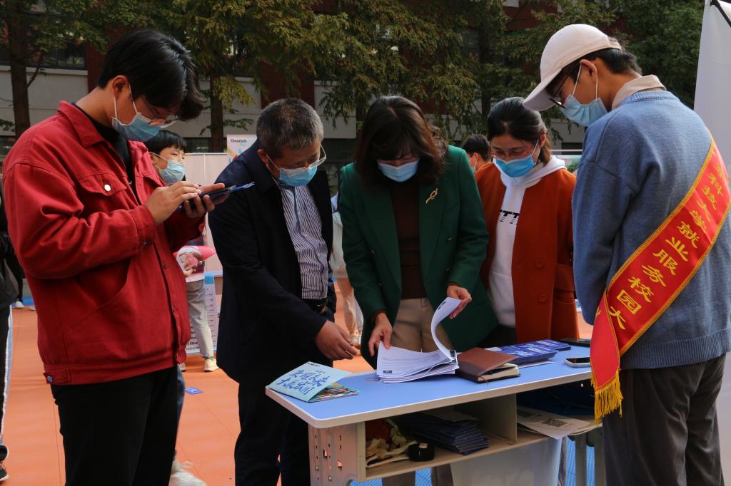 双选会现场,毕业生的求职热情高涨,各个招聘点人员络绎不绝,校园大使围绕着公司的项目研究、产品制作、企业文化与发展方向等内容向同学们介绍了公司的基本情况。毕业生结合自身的专业优势及特点,仔细分析,认真对比,提交个人简历。机电学院2023届毕业生金俊龙同学表示:“此次双选会是当前疫情防控常态化背景下的第一场线下招聘会,涵盖岗位多,覆盖专业广,给了同学们更多自主选择、相互选择的机会,让我进一步明确了自身的发展方向。”经管学院2023届研究生徐洁感慨道:“此次双选会让我们应届毕业生更好的了解到行业趋势,希望我可以借助此次双选会,进入心仪的企业!”
