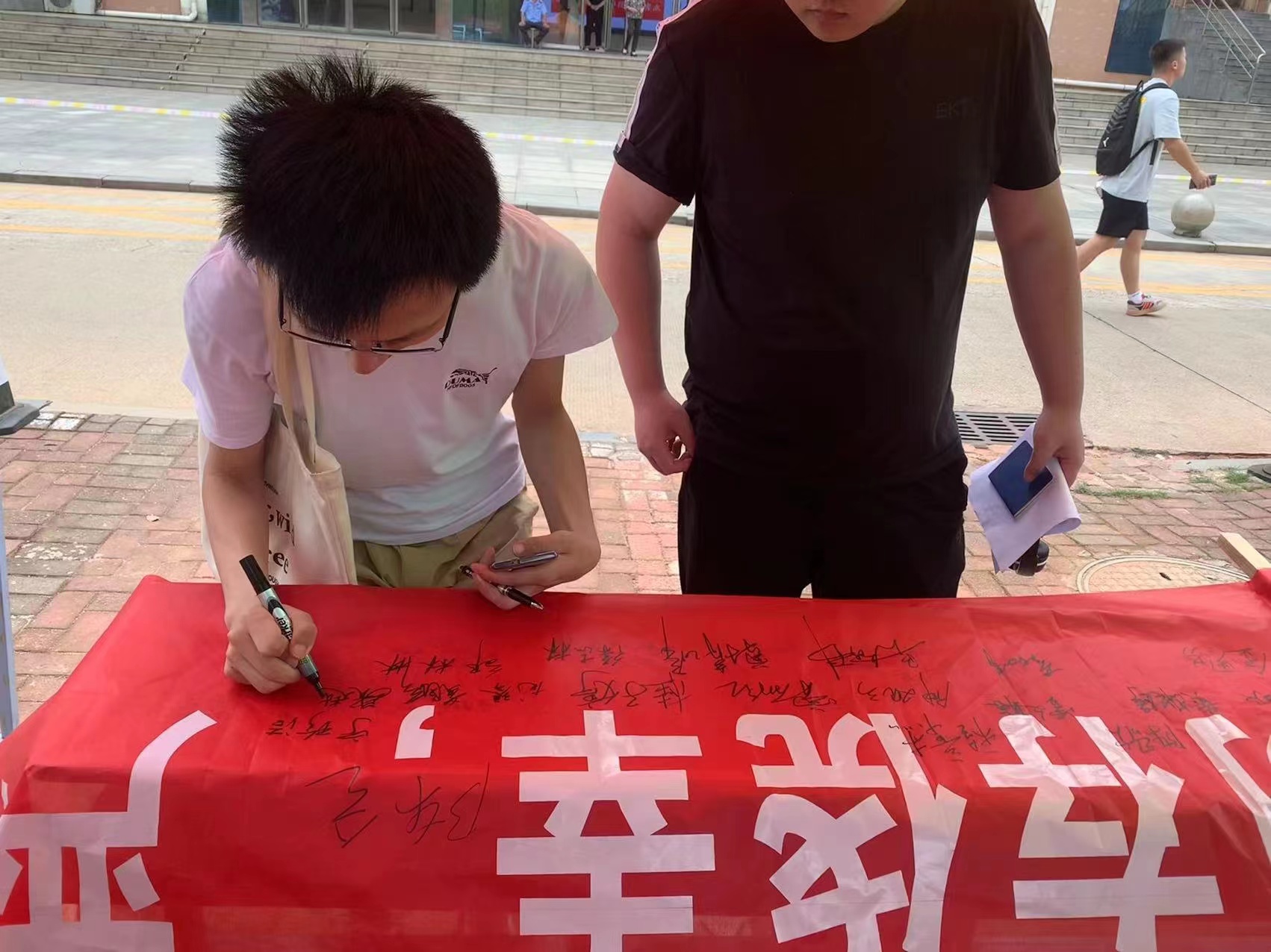 期末考试将近,为树立优良学风,加强考风考纪,营造良好的考试氛围。pa电子官方网站于6月23日在教学楼门前停车场开展了“勿存侥幸,严禁作弊,诚信考试,从我做起”主题签名活动。