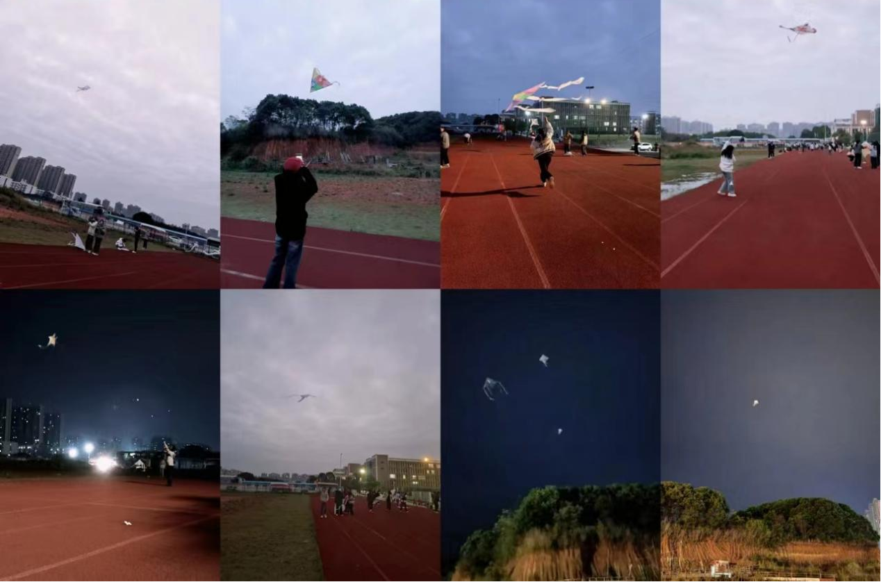 本活动以手工制作为主,活动方式为线下进行,活动分为“了解风筝”“制作风筝”“放飞风筝”三个活动流程,需要同学们收集有关风筝的资料,了解风筝制作方法,以小组合作的方式设计并制作风筝。活动过程中,工作人员指导参赛同学如何让风筝起飞,并汇总相关信息,活动全程秉持公平公正公开的原则。放飞风筝时正值傍晚,充满各种涂鸦的风筝飞翔在蓝天下,在疲惫的课余为同学们带去一丝童真的乐趣,缓解一天的压力。