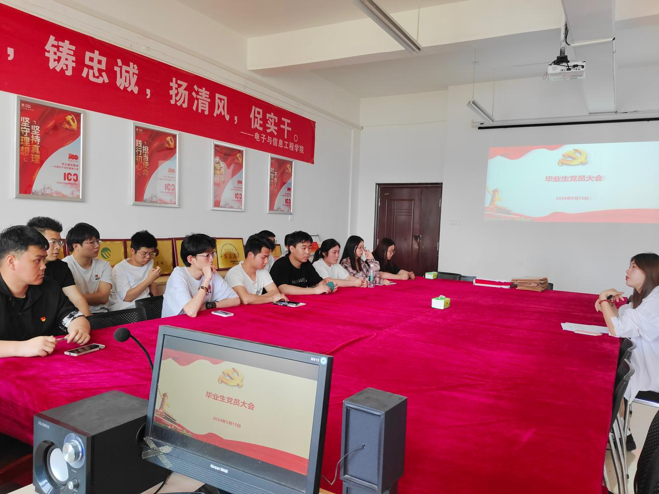 为贯彻落实全面从严治党要求,做好高校毕业生党员组织关系管理工作,进一步加强毕业生党员教育管理,坚定党员理想信念,提高党性修养,更好地发挥党员的先锋模范作用。pa电子官方网站于2024年5月15日在1407党员活动室召开毕业生党员大会,此次大会由第二党支部书记程明珠同志主持,毕业生党员同志参加本次会议。