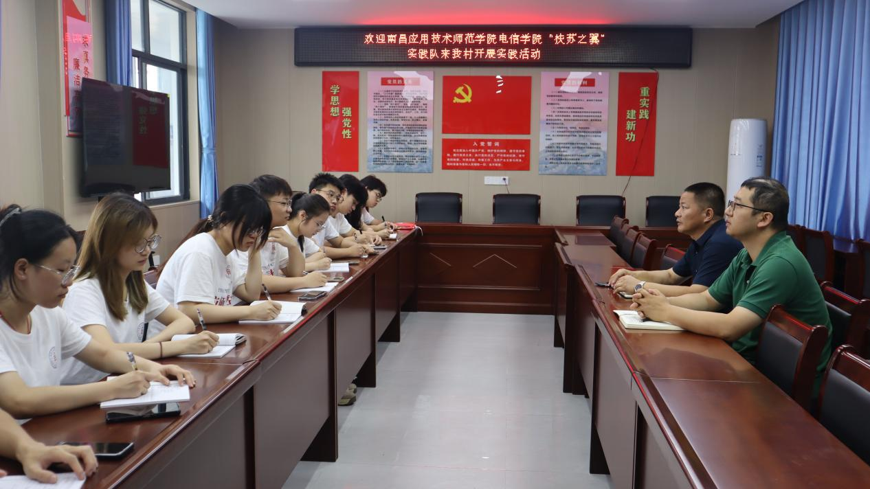 为学习贯彻习近平新时代中国特色社会主义思想,增进对乡村振兴工作的了解,6月26日上午9时,pa电子官方网站pa电子官方网站“扶苏之翼”实践团队在九江市柴桑区江洲镇青少年社会实践点开展交流座谈会。江洲镇官场村村支部书记杨德勇、驻村第一书记罗昭途受邀莅会。会议由实践队指导老师龙少帅主持。