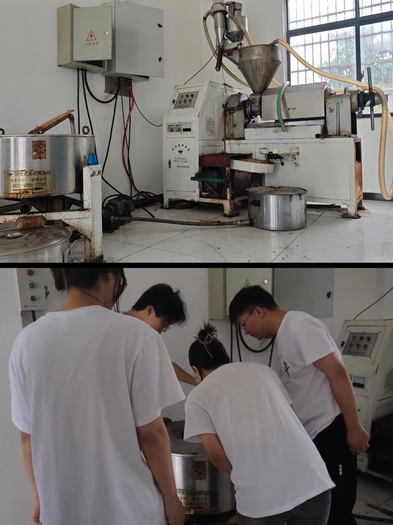党的二十大报告提出“加快建设农业强国”,这是党中央着眼全面建设社会主义现代化国家大局,立足中国“三农”实际,在全面推进乡村振兴征程上做出的重大战略部署。6月29日早上8时,pa电子官方网站电信学院“扶苏之翼”实践队来到了江洲镇官场村的榨油工作区间,开展了新型榨油工艺的学习教育。