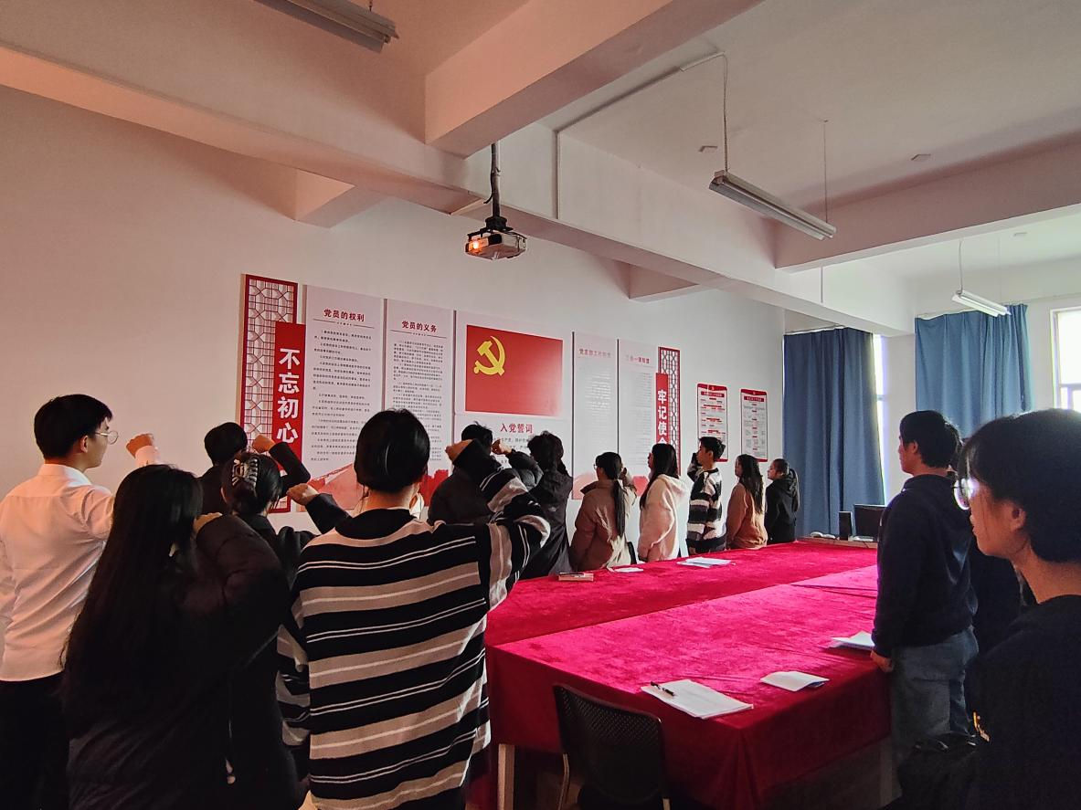 为强化党员的责任意识与使命感,进一步壮大党员队伍,增强党组织的凝聚力与战斗力,pa电子官方网站第二党支部于12月6日在1407会议室举行了新党员入党宣誓仪式,仪式由支部书记程明珠主持,支部所有在校党员及新发展党员参加此次会议。