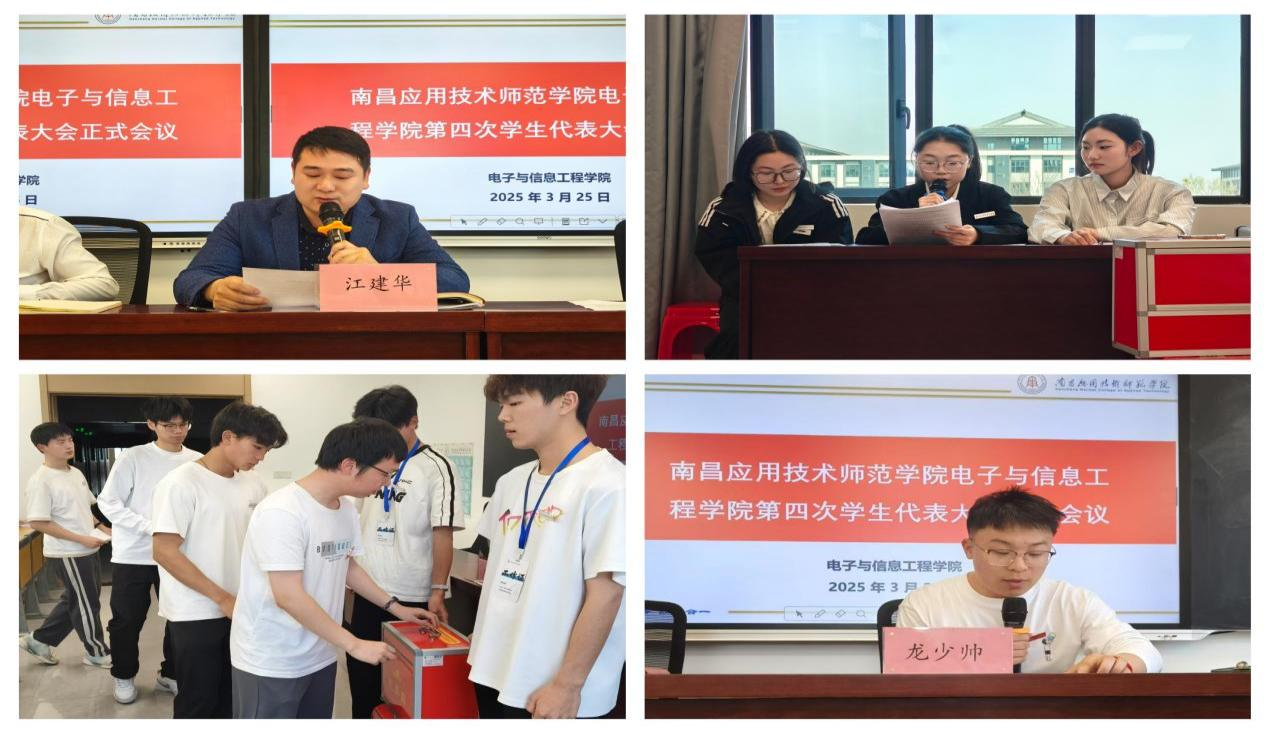 2025年3月25日下午,pa电子官方网站pa电子官方网站第四次学生代表大会在沁苑2教B座B209召开。大会由分团委书记龙少帅主持,学院党总支书记江建华、副书记黄金标、学工科科长肖诗婷出席会议,160名学生代表参与本次会议。