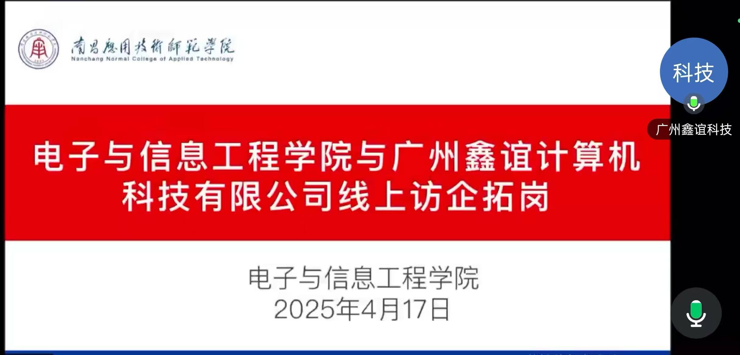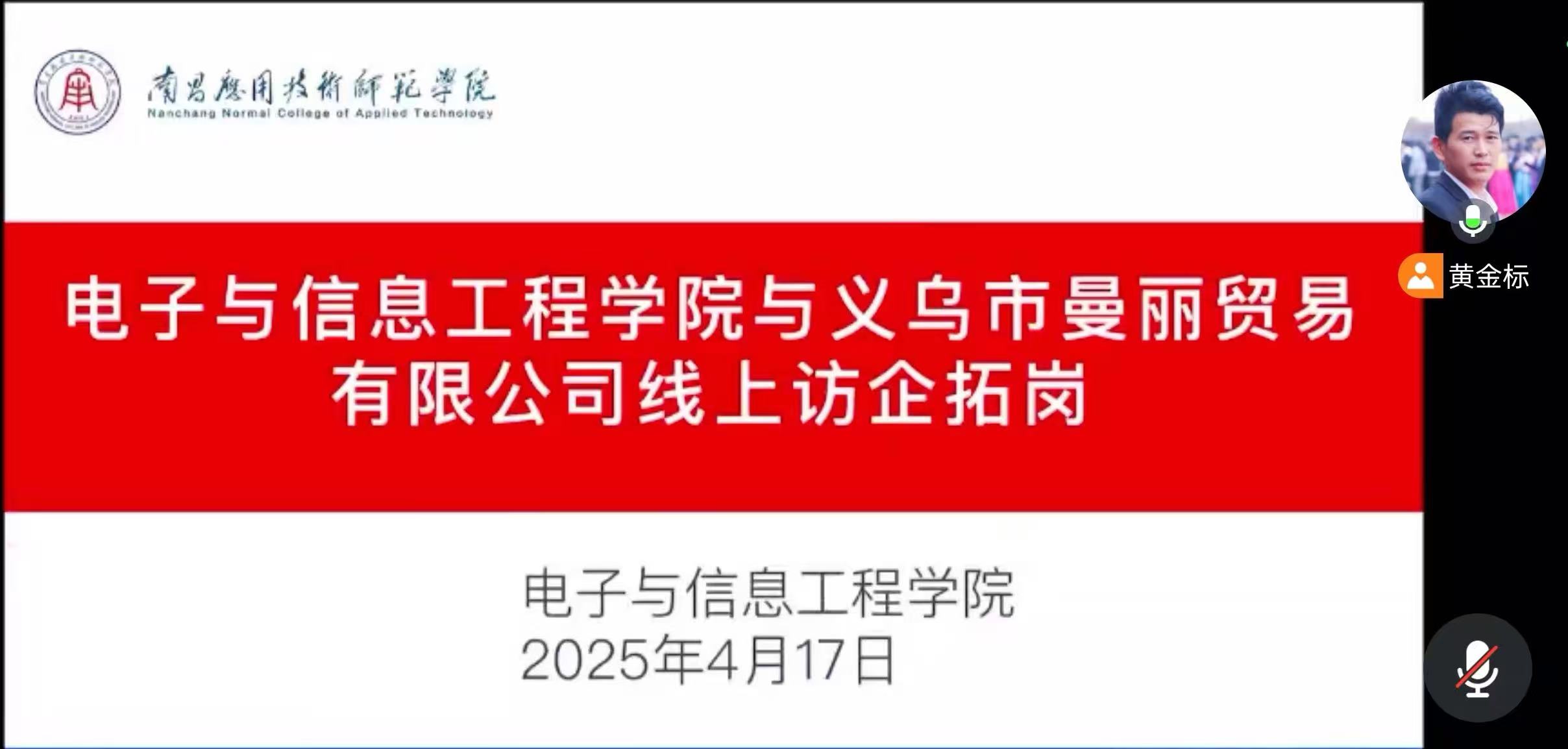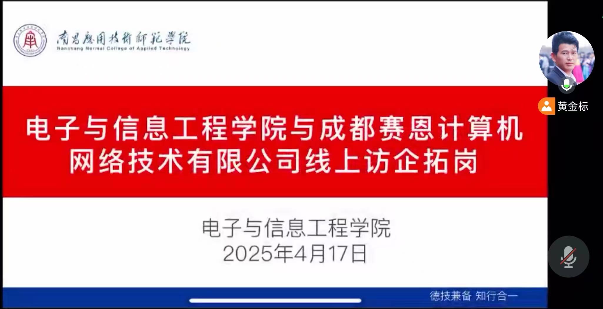 为深化产学研融合,拓宽学生就业渠道,4月17日,pa电子党总支副书记黄金标与杭州喜赛乐科技有限公司、成都赛恩计算机网络技术有限公司、广州鑫谊计算机科技有限公司、义乌市曼丽贸易有限公司开展访企拓岗专项行动。此次访企旨在通过校企面对面线上交流,精准对接人才需求,推动产学研深度合作。