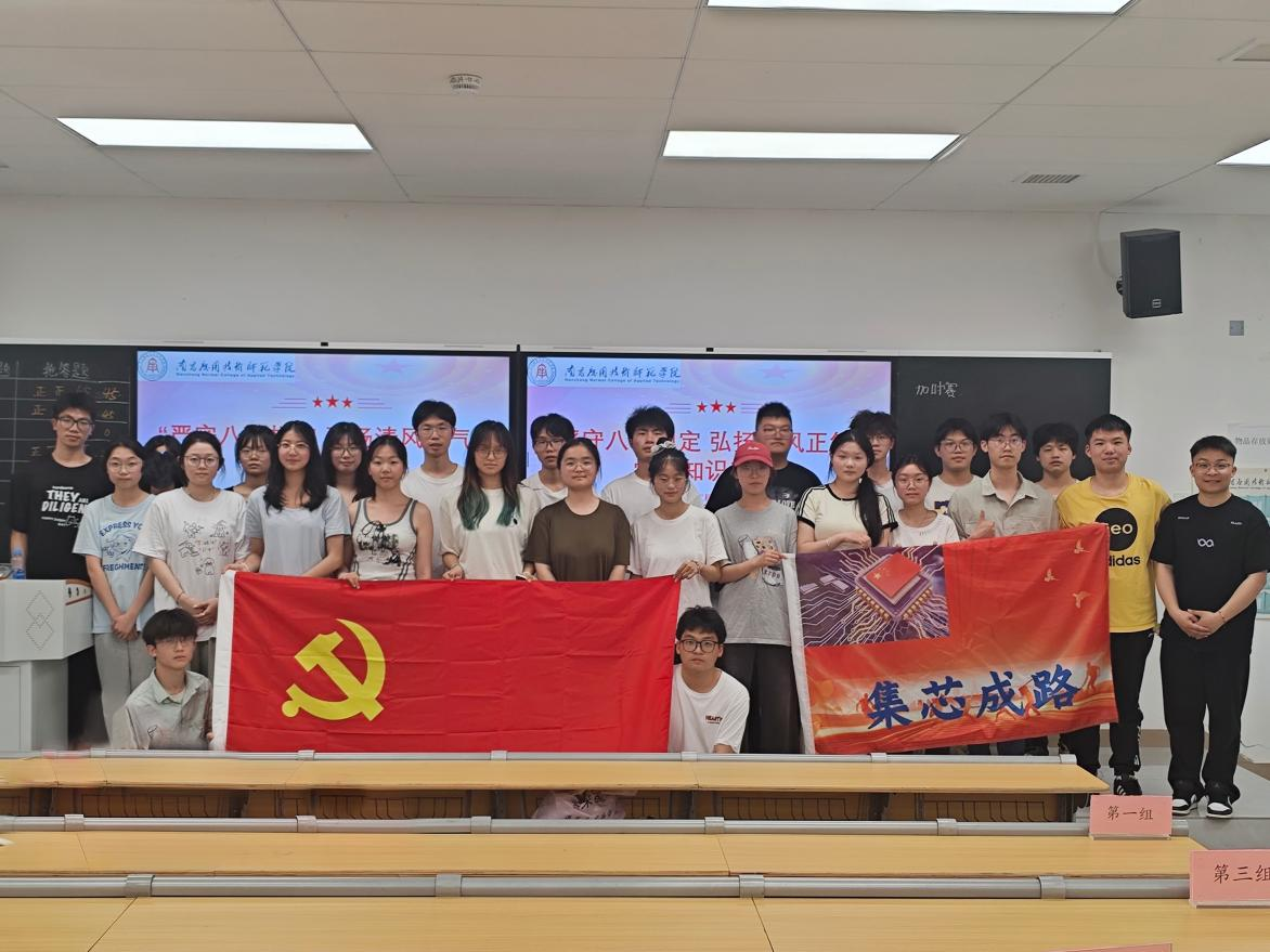 为深入贯彻中央八项规定精神学习教育,强化师生纪律意识,筑牢拒腐防变的思想防线,传承红色基因,弘扬廉洁文化,促进党团融合发展。pa电子官方网站党总支于5月14日在沁苑2教A座109教室举办“严守中央八项规定精神 弘扬清风正气”为主题的党团知识竞赛,“集芯成路”和“红星闪耀”红色班级学生参加此次活动。