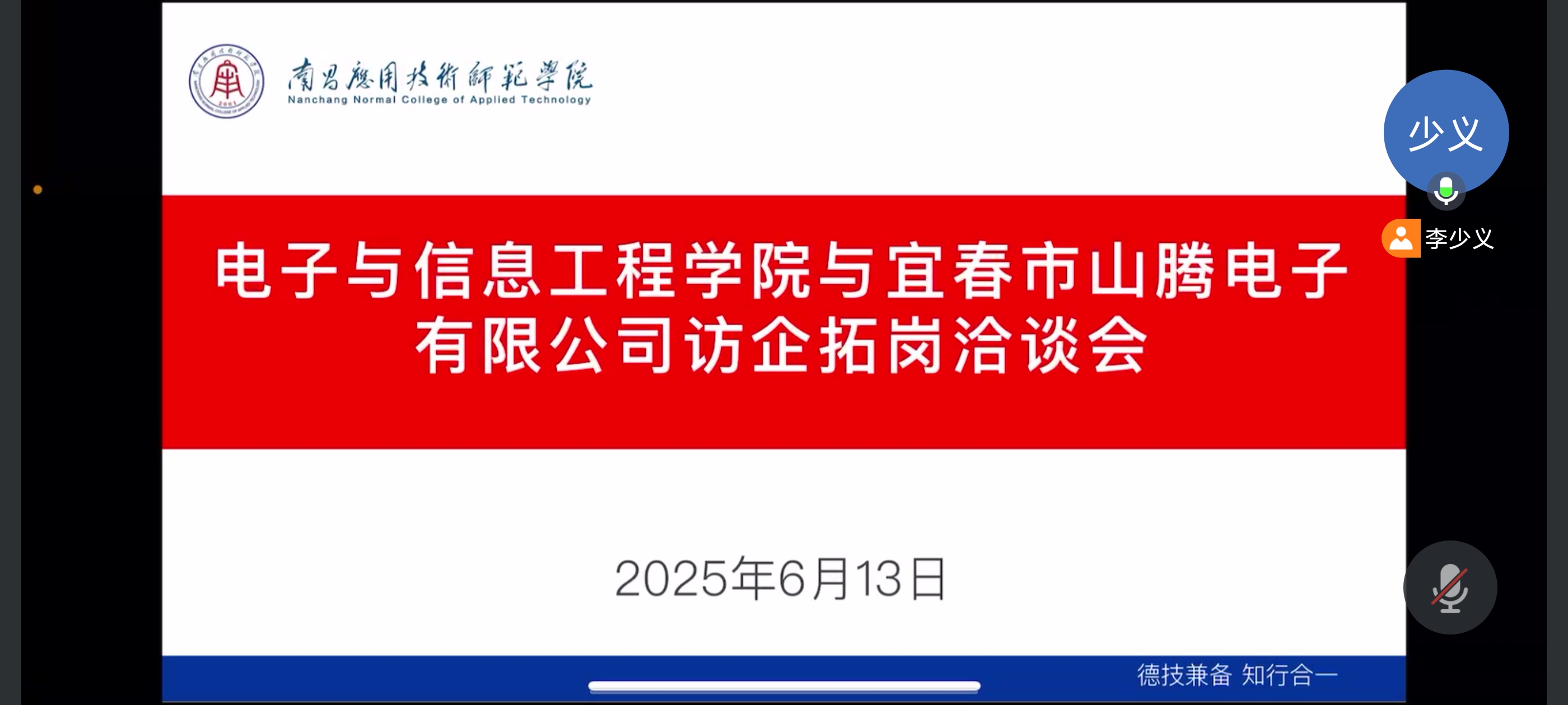 为进一步深化校企协同发展,精准对接企业需求,拓宽毕业生就业岗位,校长助理李少义和院长魏艳平于6月12日与上海聚微计算机技术有限公司、赣州华优出行科技有限公司、杭州航特科技有限公司、江西圆梦会展有限公司、宜春市山腾电子有限公司开展线上交流工作。