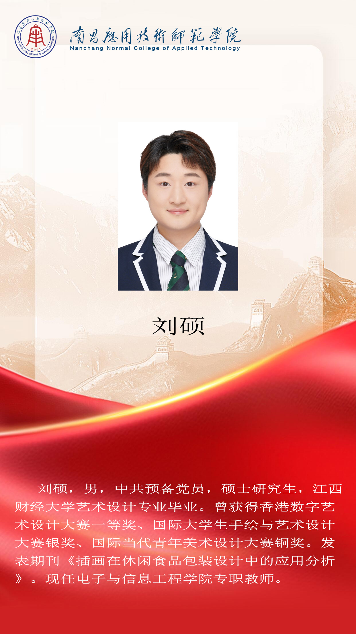 先进典型 优秀毕业生 优秀学生风采 优秀教职工 您现在的位置是:首页 > 先进典型 > 优秀教职工 刘硕 数字媒体系主任 管理员2025-06-161235 上一篇 刘军 副教授 下一篇 张扬 工程技术系主任