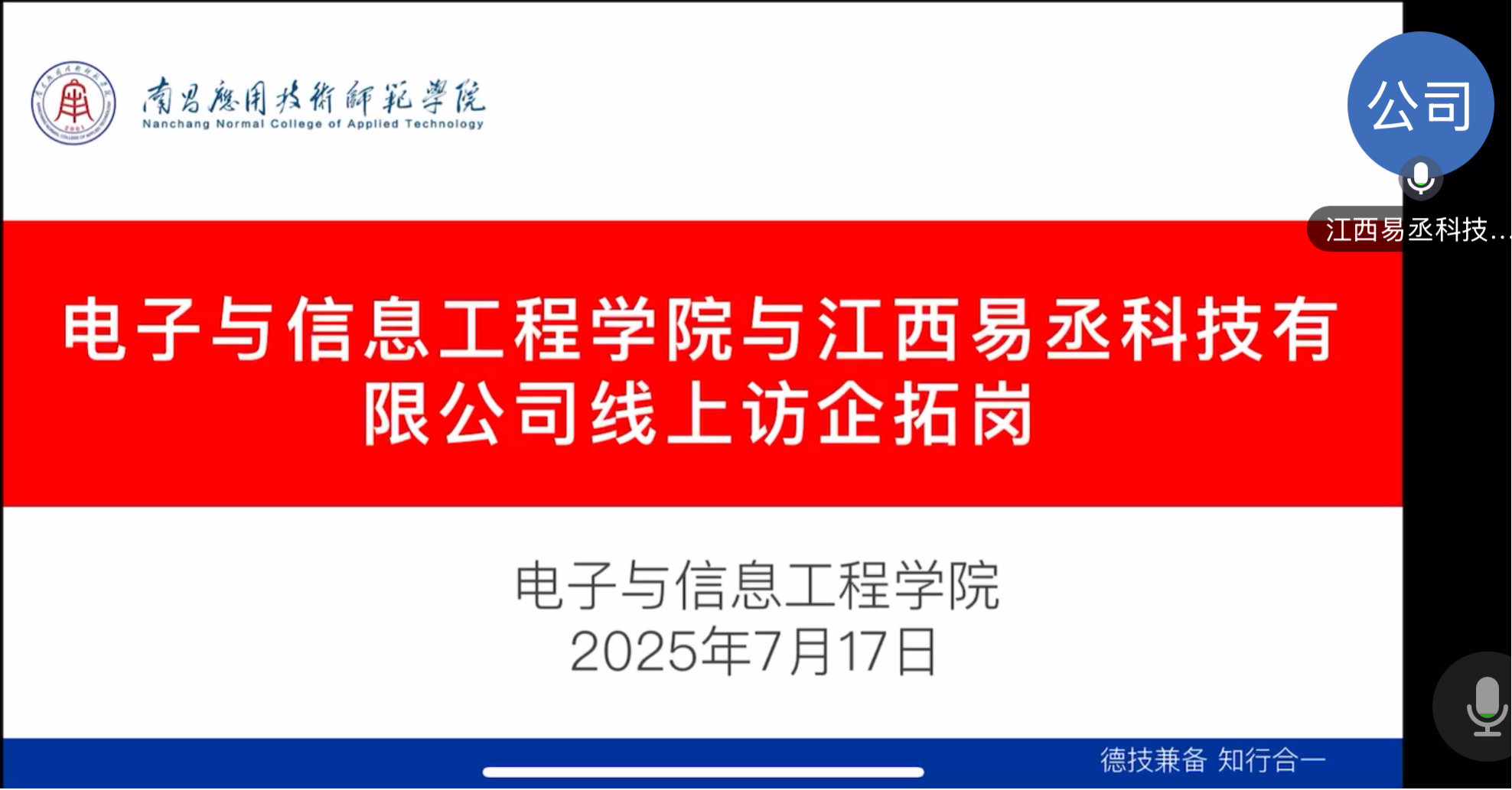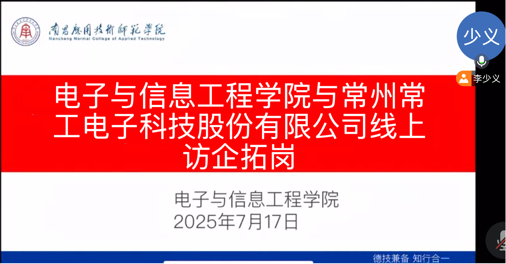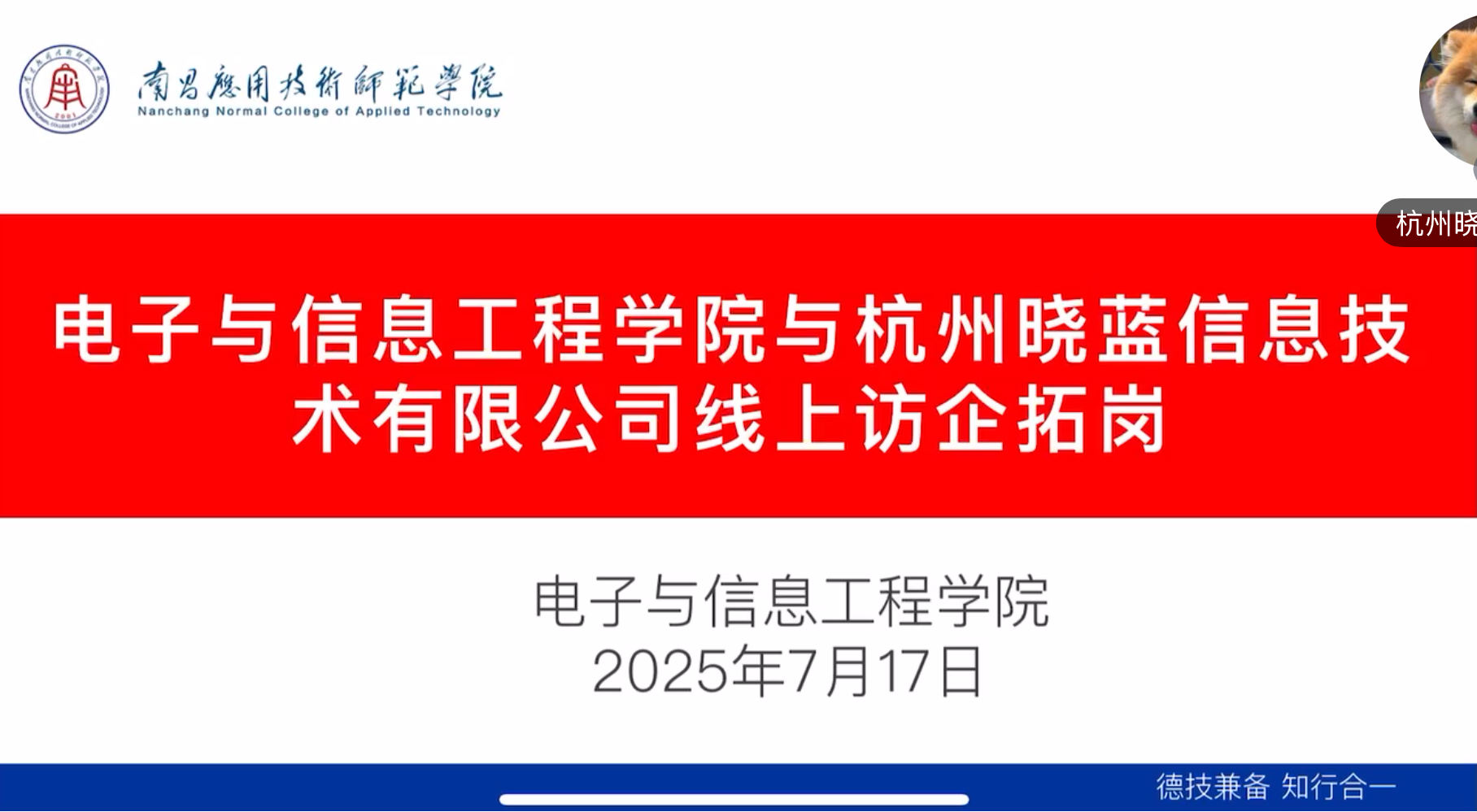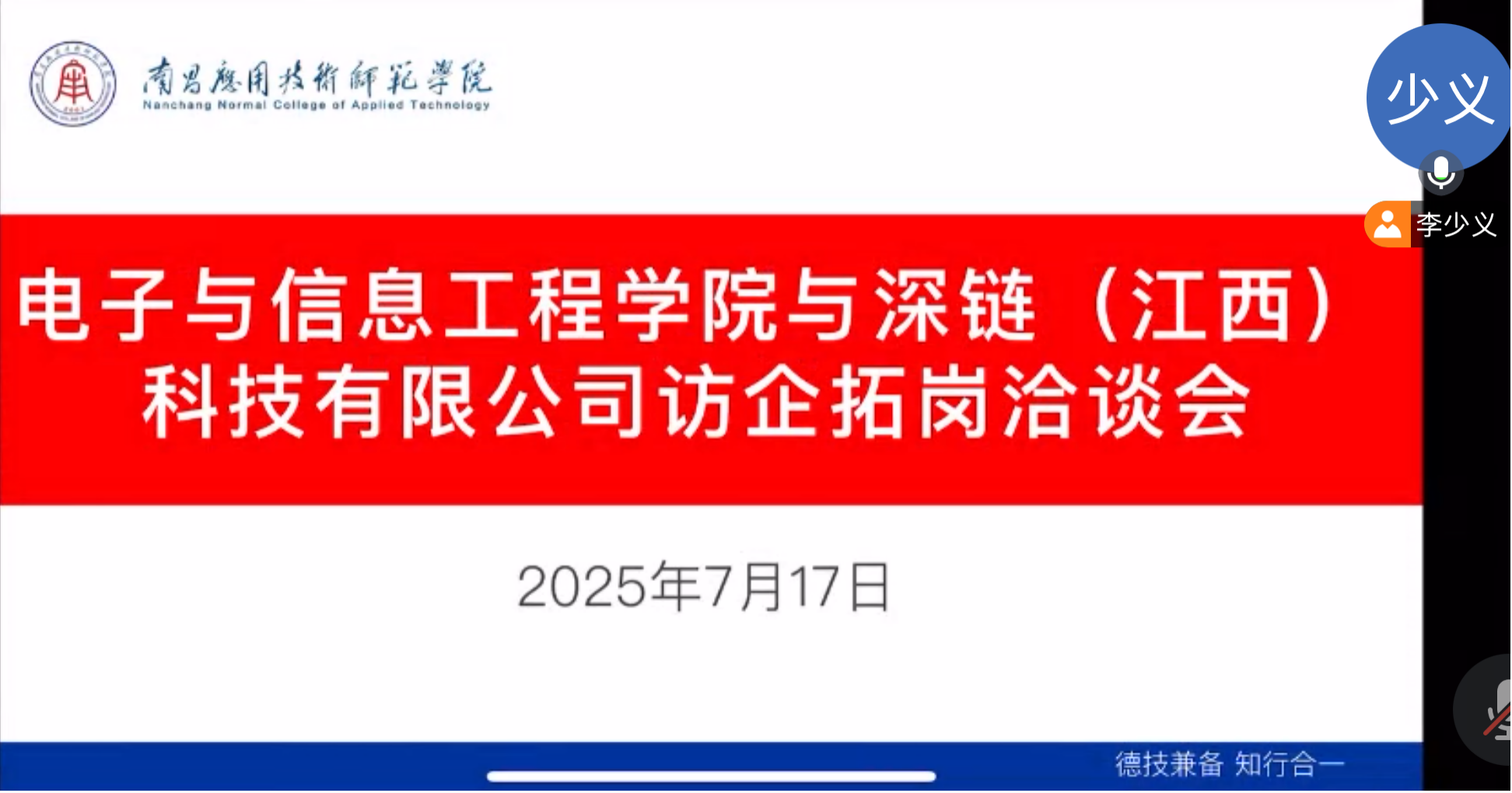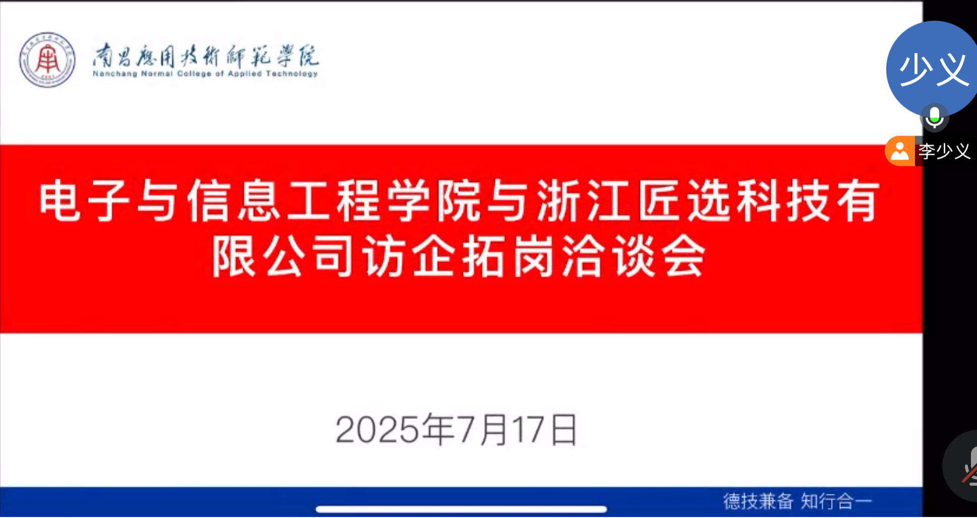 为进一步深化校企合作,拓宽毕业生就业渠道,7月17日,pa电子院长魏艳平和校长助理李少义与杭州晓蓝信息技术有限公司、江西易丞科技有限公司、常州常工电子科技股份有限公司、深链(江西)科技有限公司、浙江匠选科技有限公司在腾讯会议开展线上访企拓岗活动,探索校企协同育人新路径。