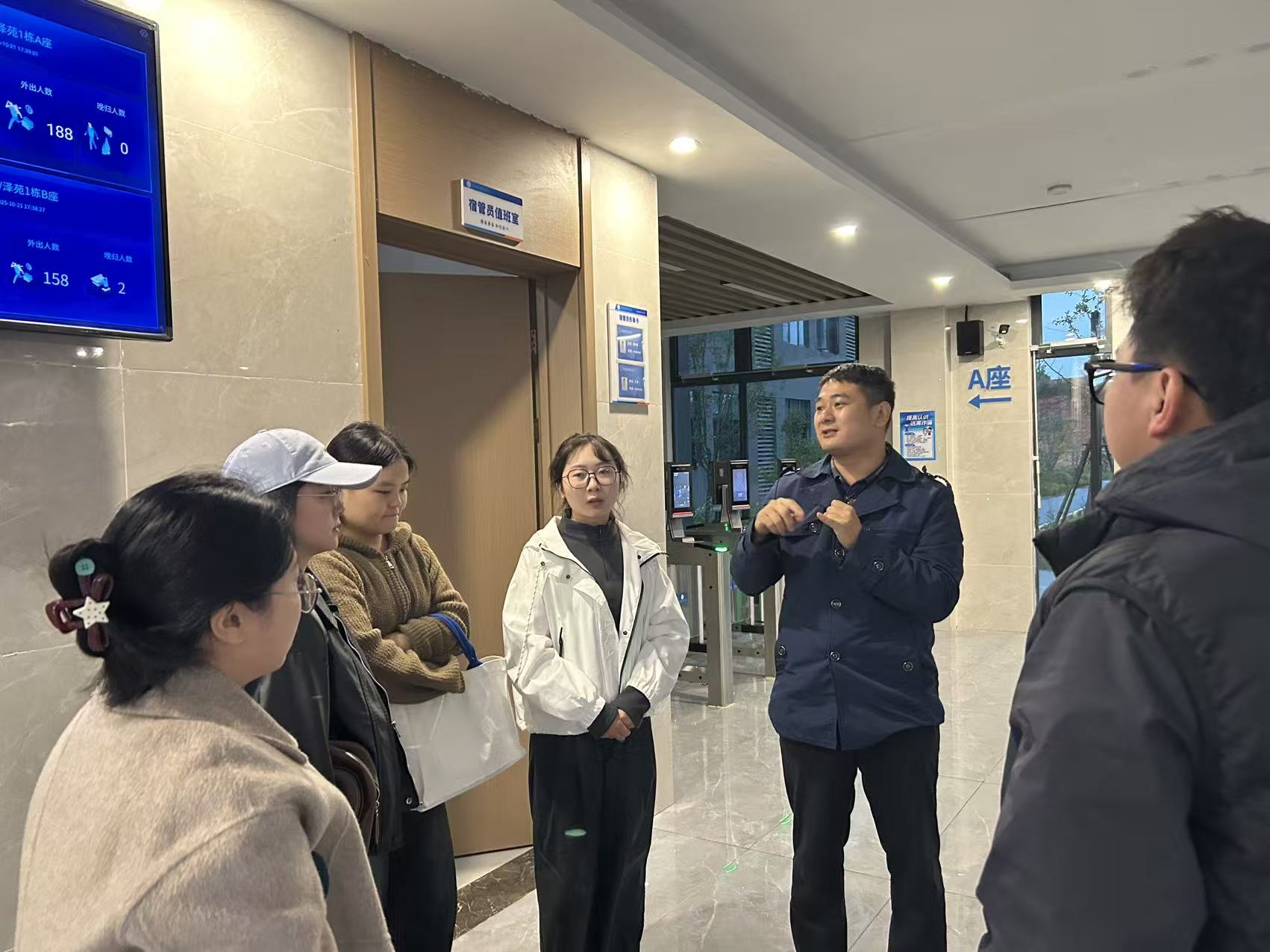 出发前,全体组员在宿舍楼下集合,明确了检查重点及注意事项。江建华指出:宿舍是学生在校期间的重要生活场所,安全检查需坚持“严格标准”与“人文关怀”并重,既要排查隐患,也要引导学生主动遵守安全规定,要积极引导学生从“被动遵守安全规定”向“主动维护宿舍安全”的转变。黄金标表示:安全工作永远在路上,我们不仅要通过检查消除显性隐患,更要通过常态化教育筑牢隐性防线,让每一位学生都成为安全防线的构建者与守护者,用持续的行动为校园安全保驾护航。
